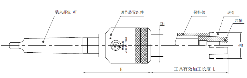 注:孔徑Φ26-68的滾壓刀有效加工長度從B檔開始柄部標(biāo)配MT3,如需其他型號規(guī)格需定做。加工孔徑Φ40以上的滾壓刀,由于調(diào)節(jié)組件的外徑比加工孔徑小,可通過加長柄部尺寸的方法增加加工長度。